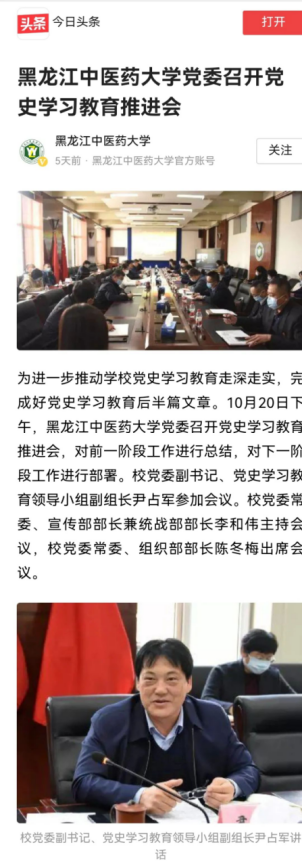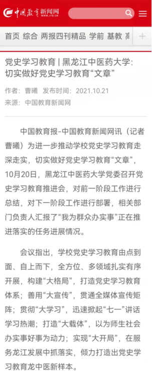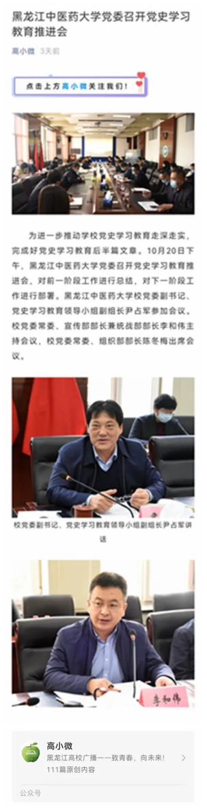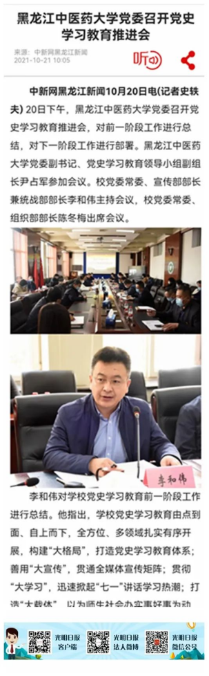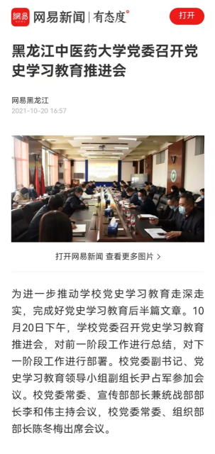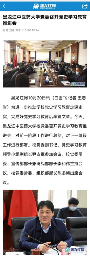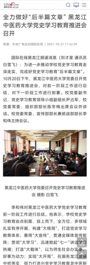 为进一步推动学校党史学习教育走深走实,完成好党史学习教育后半篇文章。10月20日下午,学校党委召开党史学习教育推进会。我校的相关工作得到光明网、央广网、中国教育报、中新网、中国教育在线、黑龙江网、国际在线、改革网、黑龙江高校广播、龙头新闻、今日头条、网易新闻等12家媒体的报道和关注。
