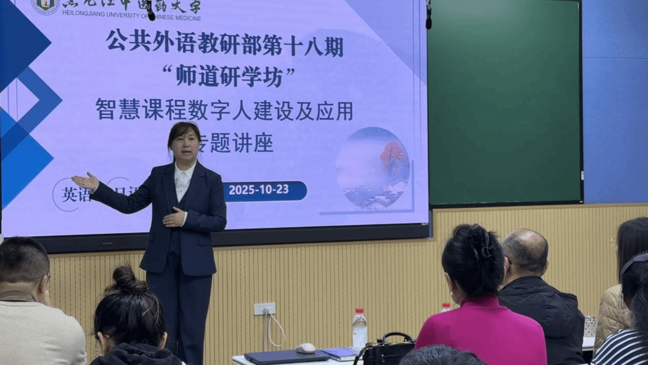 10月23日,公共外语教研部在教研综合楼301教室举办第十八期“师道研学坊”——智慧课程数字人建设及应用专题讲座,帮助教师掌握智慧教学环境下的课程设计方法,提升信息化教学能力。