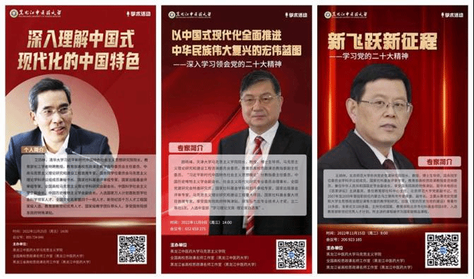 举办深入学习党的二十大精神系列高端学术报告会。学院邀请清华大学习近平新时代中国特色社会主义思想研究院院长、教授、博士生导师,教育部高校思想政治理论课总教指委主任委员,中央马克思主义理论研究和建设工程首席专家,国务院学位委员会马克思主义理论学科评议组成员兼秘书长艾四林作题为《深入理解中国式现代化的中国特色》的学术报告。天津大学马克思主义学院院长、教授、博士生导师,中央马克思主义理论研究和建设工程咨询委员会委员,教育部高校思想政治理论课总教指委副主任委员、“习近平新时代中国特色社会主义思想概论”分教指委主任委员颜晓峰作题为《以中国式现代化全面推进中华民族伟大复兴的宏伟蓝图》的学术报告。北京师范大学中共党史党建研究院院长、教授、博士生导师,国务院学位委员会学科评议组成员,教育部高校思想政治理论课教指委咨询委员会委员王炳林作题为《新飞跃新征程》的学术报告。
