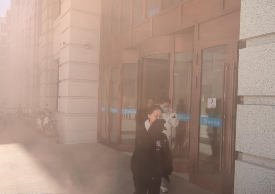 上午8时,演练正式开始,所有研究生按照预定方案中安全撤离路线快速而有序地抵达疏散安全区域。