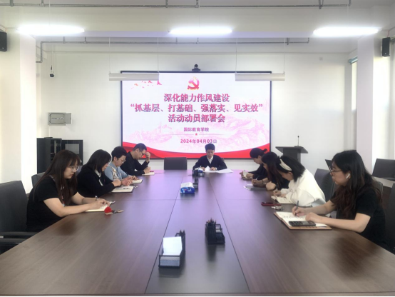 4月3日上午,国际教育学院召开深化能力作风建设“抓基层、打基础、强落实、见实效”活动动员部署会。国际教育学院直属党支部书记祝媛媛主持会议,学院全体教职工参加会议。