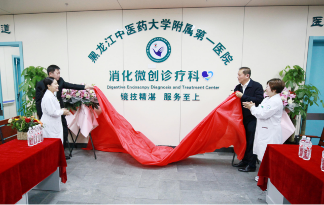 邢国利、李书霖、消化微创诊疗科主任刘颖、护士长苗丽红共同为新科室揭牌
