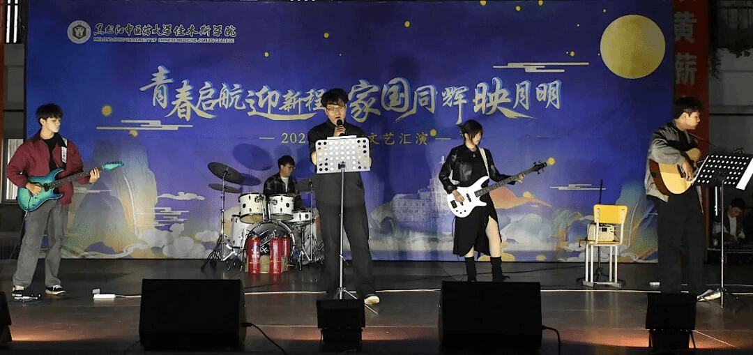 晚会在学院乐队带来的《追梦赤子心》的激昂旋律中拉开序幕。