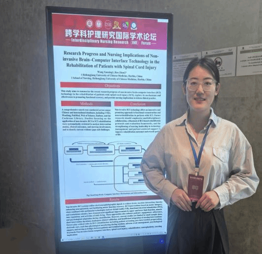 王雪宁的研究论文《Research Progress and Nursing Implications of Non-invasive Brain–Computer Interface Technology in the Rehabilitation of Patients with Spinal Cord Injury》入选壁报交流,该研究探讨非侵入性脑机接口技术在脊髓损伤患者康复中的应用。