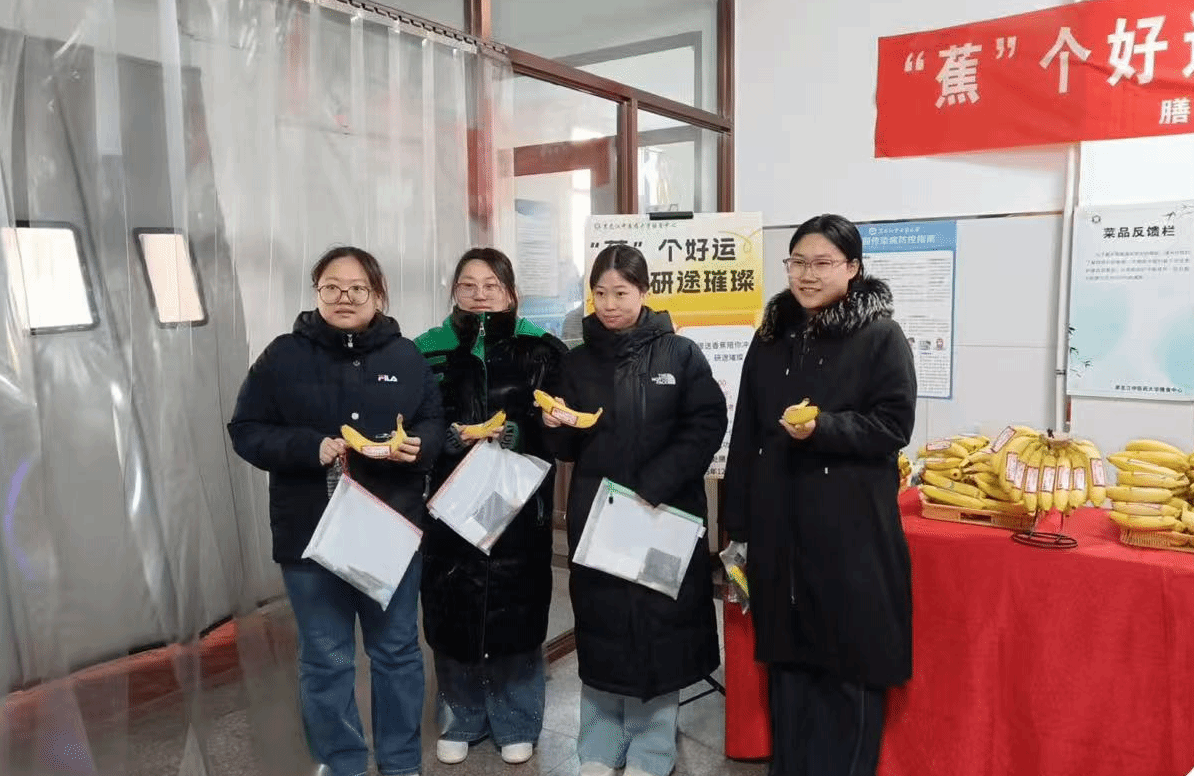 为坚定学生的考试信心,缓解考试压力,传递温暖力量,膳食中心在考研当日为400余名考研学子赠送香蕉,寓意“蕉”个好运,缓解考场压力,甜甜的香蕉承载满满的祝福,传递着校园温暖。
