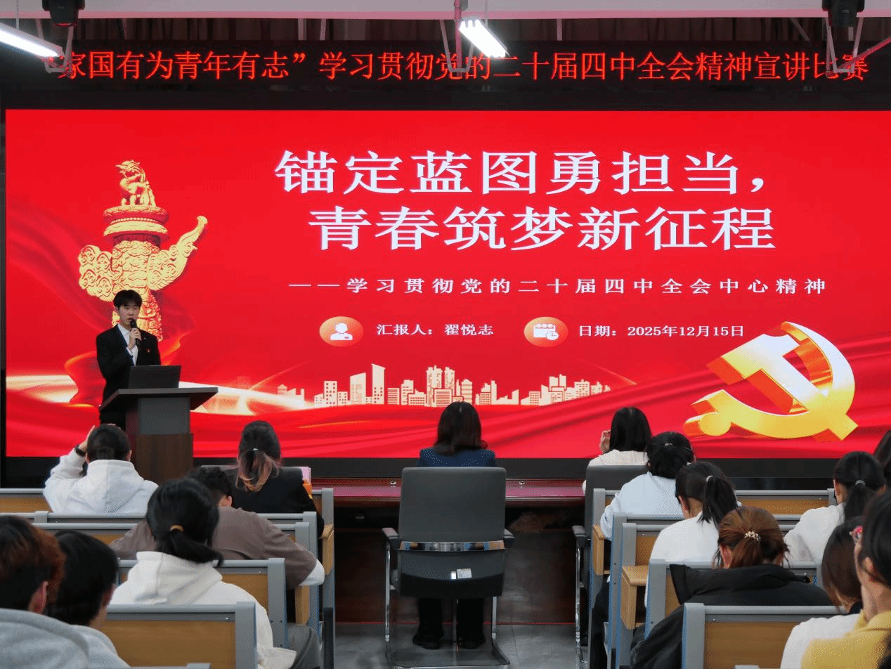 12月15日,校团委举办“家国有为,青年有志”学习贯彻党的二十届四中全会精神宣讲比赛。