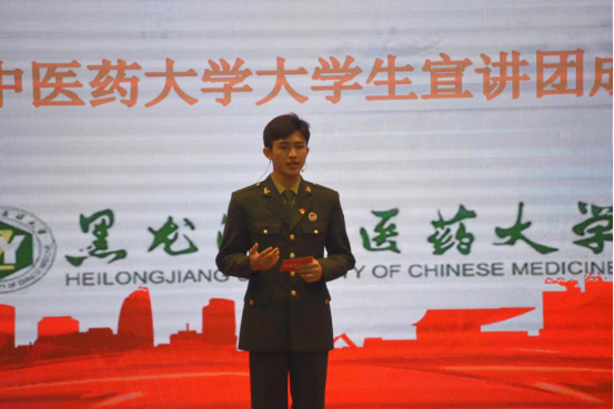 优秀义务兵、校武术队队长、第二临床医学院中医康复学第二党支部学生党员、2020级中医康复学专业杨子欢同学以《中国梦 强军梦 我的梦》为题作宣讲报告。