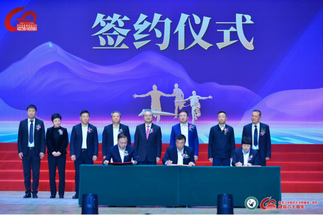 活动举行了合作共建签约仪式,中国中药控股有限公司副总裁赵东吉,哈尔滨城市发展投资集团有限公司党委委员、副总经理李春涛,我校附属第一医院副院长李竹英分别代表三方签约。国家中医药管理局医政司副司长邢超等与会领导见证签约。
