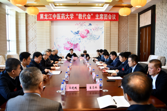 上午10时30分,大会主席团会议在综合楼1105会议室召开。会议由大会执行主席、校党委书记赵炜明主持。主席团成员认真听取了各代表团团长所作的分组讨论情况汇报,表决通过了《黑龙江中医药大学第七届教职工代表大会第二次会议关于校长工作报告的决议(草案)》。
