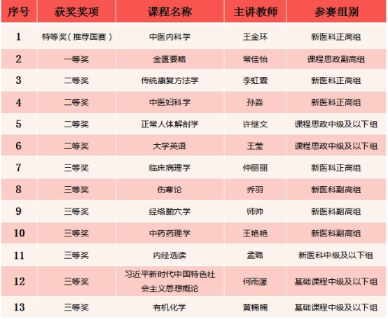 近日,由省教育厅主办的第四届全国高校教师教学创新大赛(黑龙江赛区)决赛在哈尔滨工程大学落下帷幕。我校参赛教师共获特等奖1项、一等奖1项、二等奖4项、三等奖7项,学校首次获得大赛优秀组织奖,为我校参赛以来最好成绩。其中,第一临床医学院王金环教授将代表我省参加第四届全国高校教师教学创新大赛。