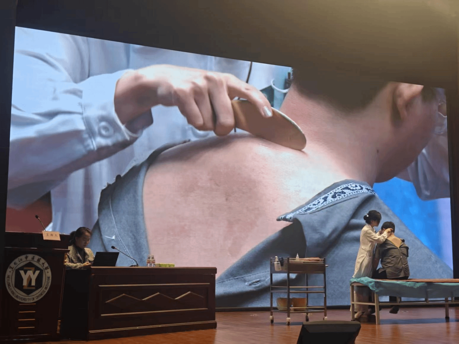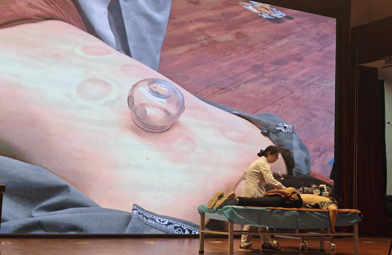 黑龙江中医药大学附属第一医院杨添淞团队现场演示刮痧与平衡火罐