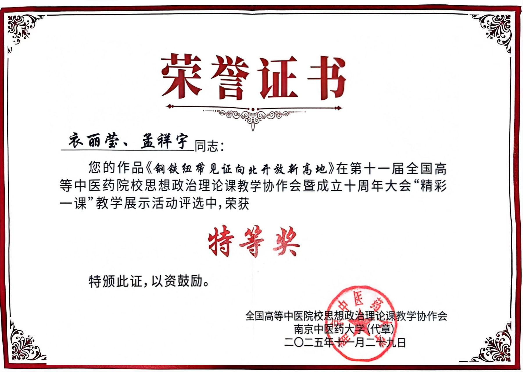 我校马克思主义学院教师衣丽莹、孟祥宇主讲的《钢铁纽带见证向北开放新高地》行走的思政课荣获大会“精彩一课”教学展示特等奖。
