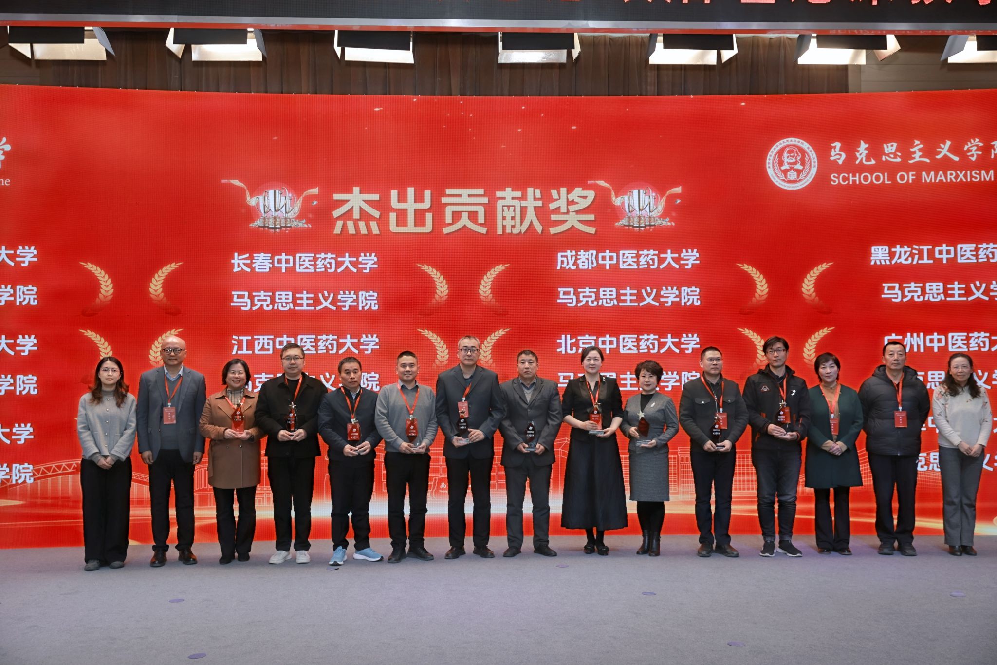 我校马克思主义学院被授予“杰出贡献奖”,院长周苏娅(右七)代表学院上台领奖