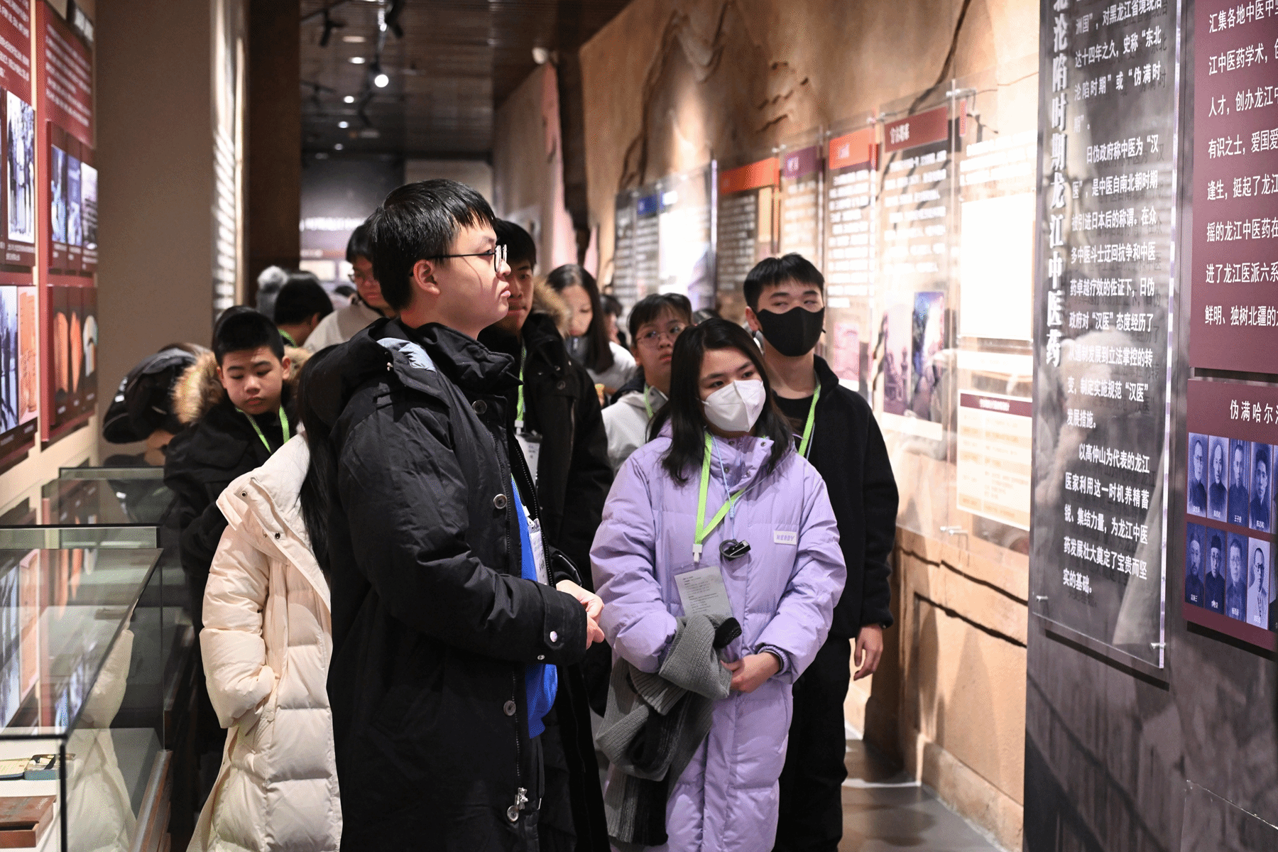 交流团先后参观了我校“大医之路”文化园及黑龙江中医药博物馆,通过多维度展示,全面了解学校发展历程与龙江医药特色,沉浸式感受中医药文化的深厚底蕴与独特魅力。