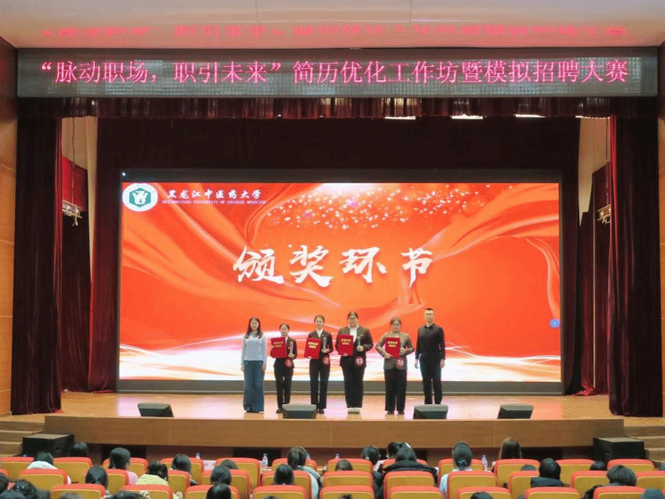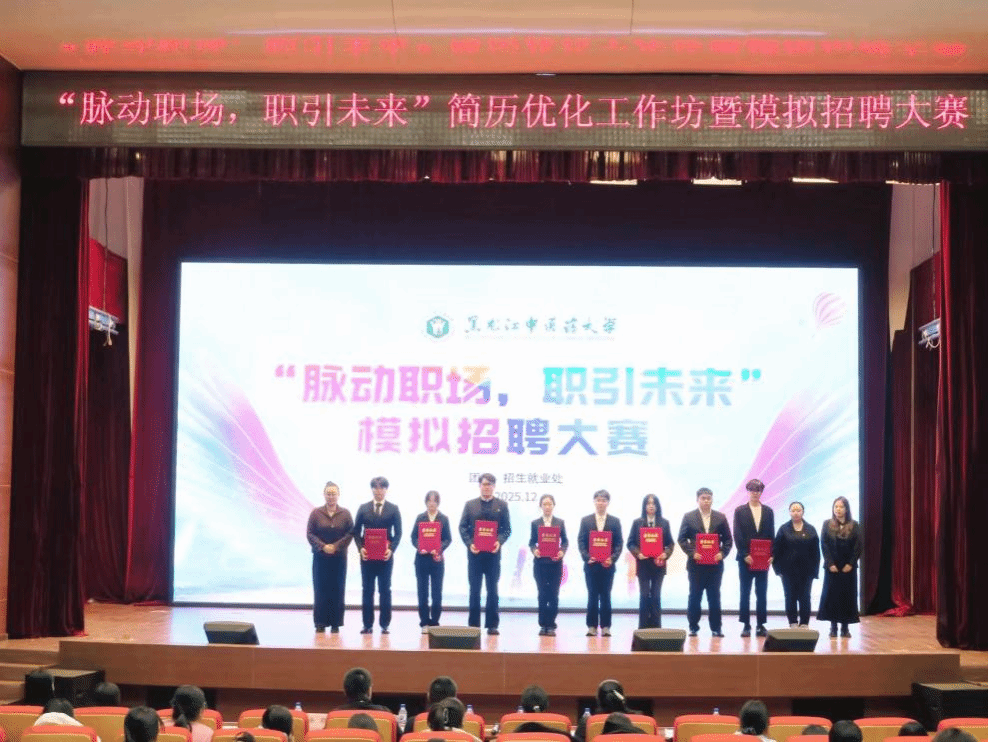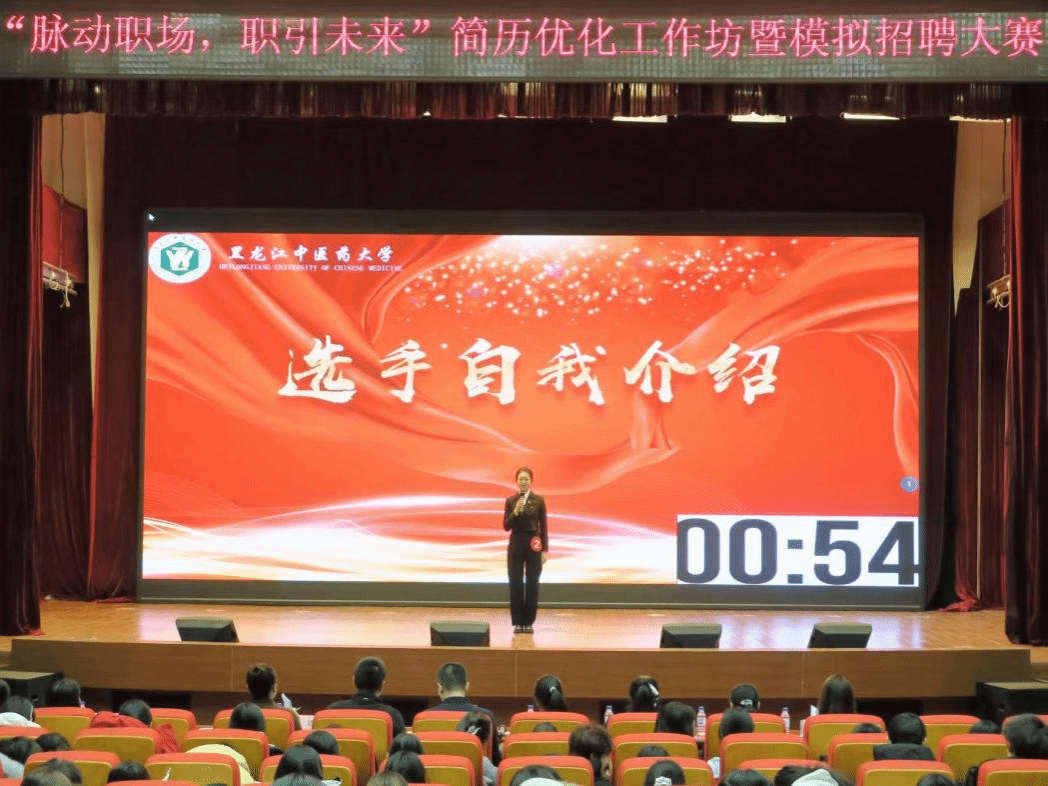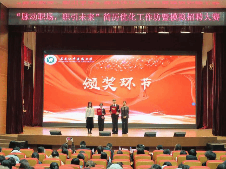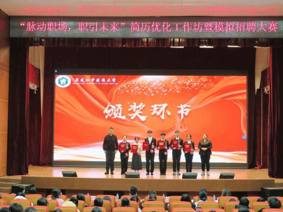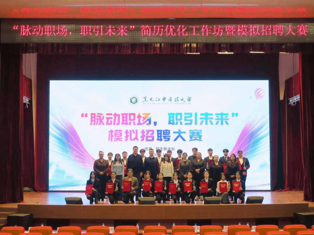为进一步提升我校学生就业竞争力,引导学生树立正确的职业规划理念,将所学专业知识与未来职业发展精准对接,12月3日下午,由校团委与招生就业处联合主办的黑龙江中医药大学“脉动职场,职引未来”简历优化工作坊暨模拟招聘大赛决赛在综合楼主会场举行。团委、学生工作处、招生就业处及各学院共青团工作负责人出席活动并担任评委,全校三百余名师生与会。