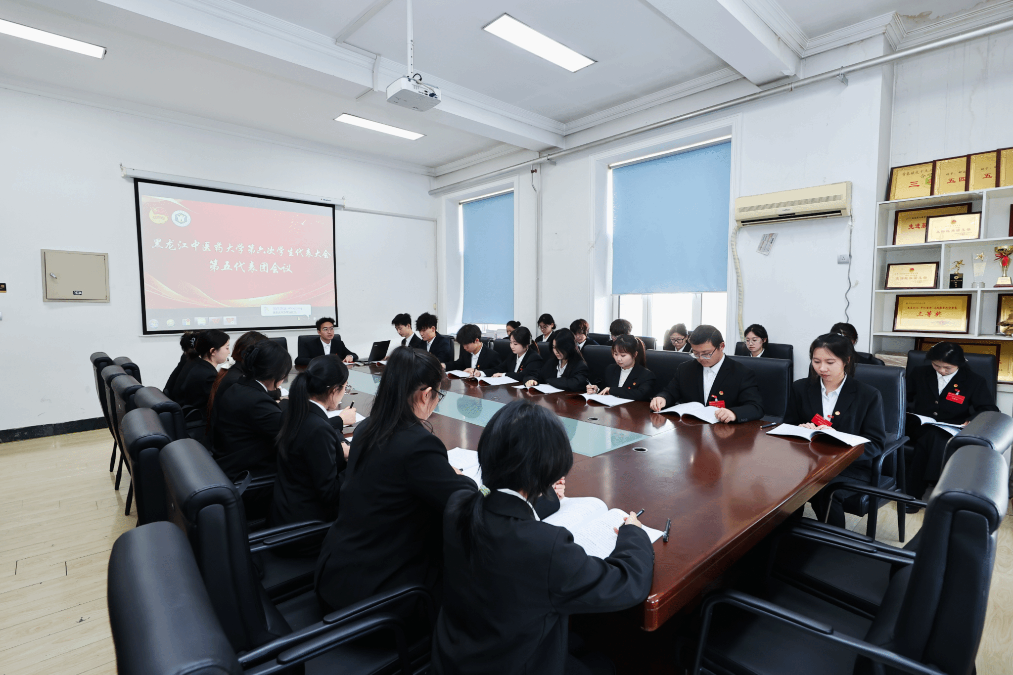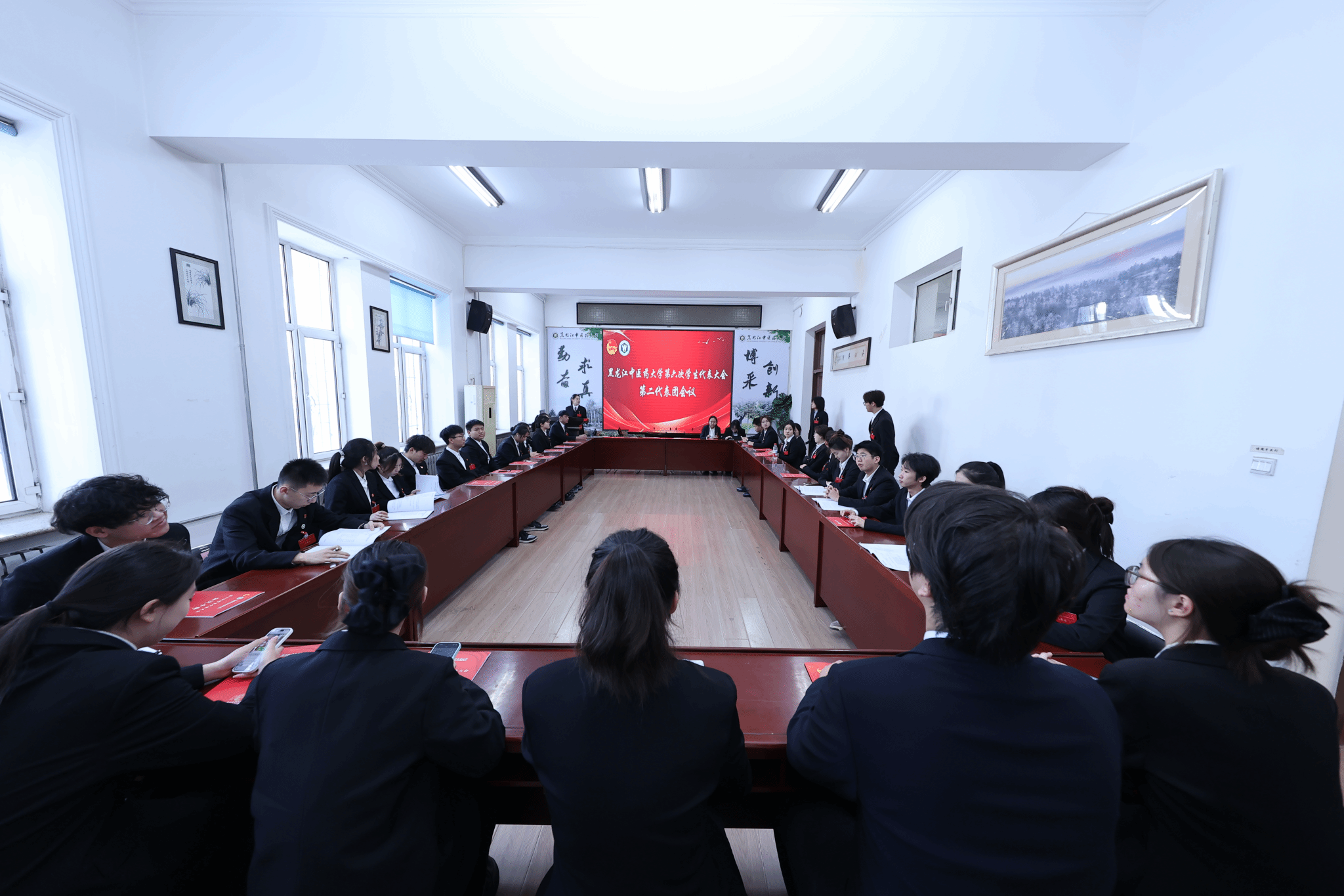 5个学生代表团在各自分会场对《黑龙江中医药大学2024—2025年度学生委员会工作报告(草案)》和《黑龙江中医药大学学生会章程(修订案)》进行讨论。各位代表踊跃发言,为学生会发展建言献策。