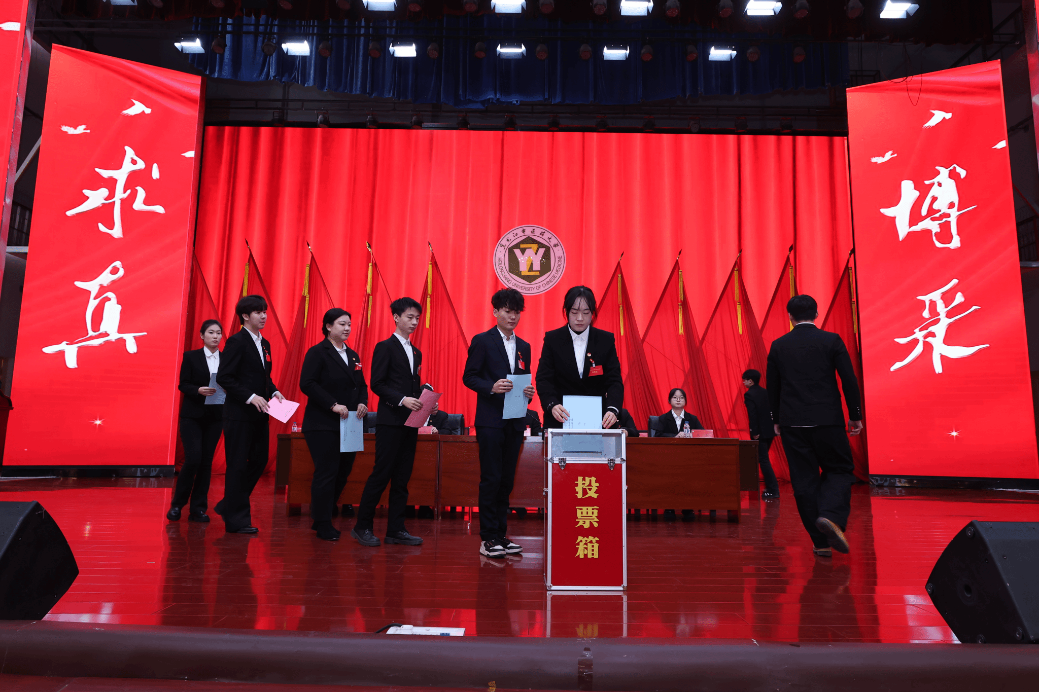12月5日10时,大会举行第二次全体会议,听取了《黑龙江中医药大学2024—2025年度学生委员会工作报告(草案)》,介绍黑龙江中医药大学第六届学生委员会委员、主席团候选人建议人选情况,听取、审议、通过《黑龙江中医药大学第六届学生委员会委员、主席团选举监票、计票小组名单(草案)》,选举黑龙江中医药大学第六届学生委员会委员、主席团成员。