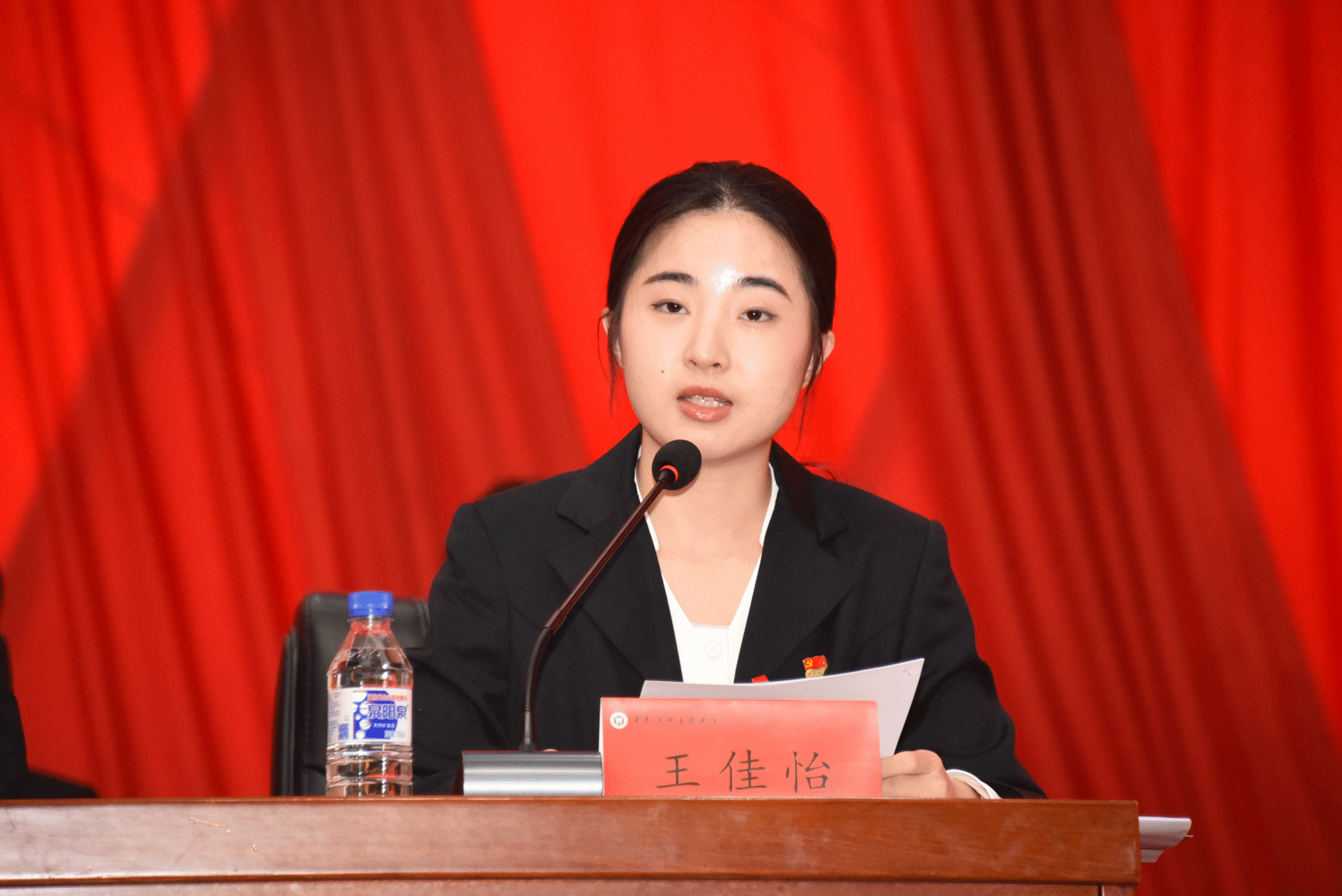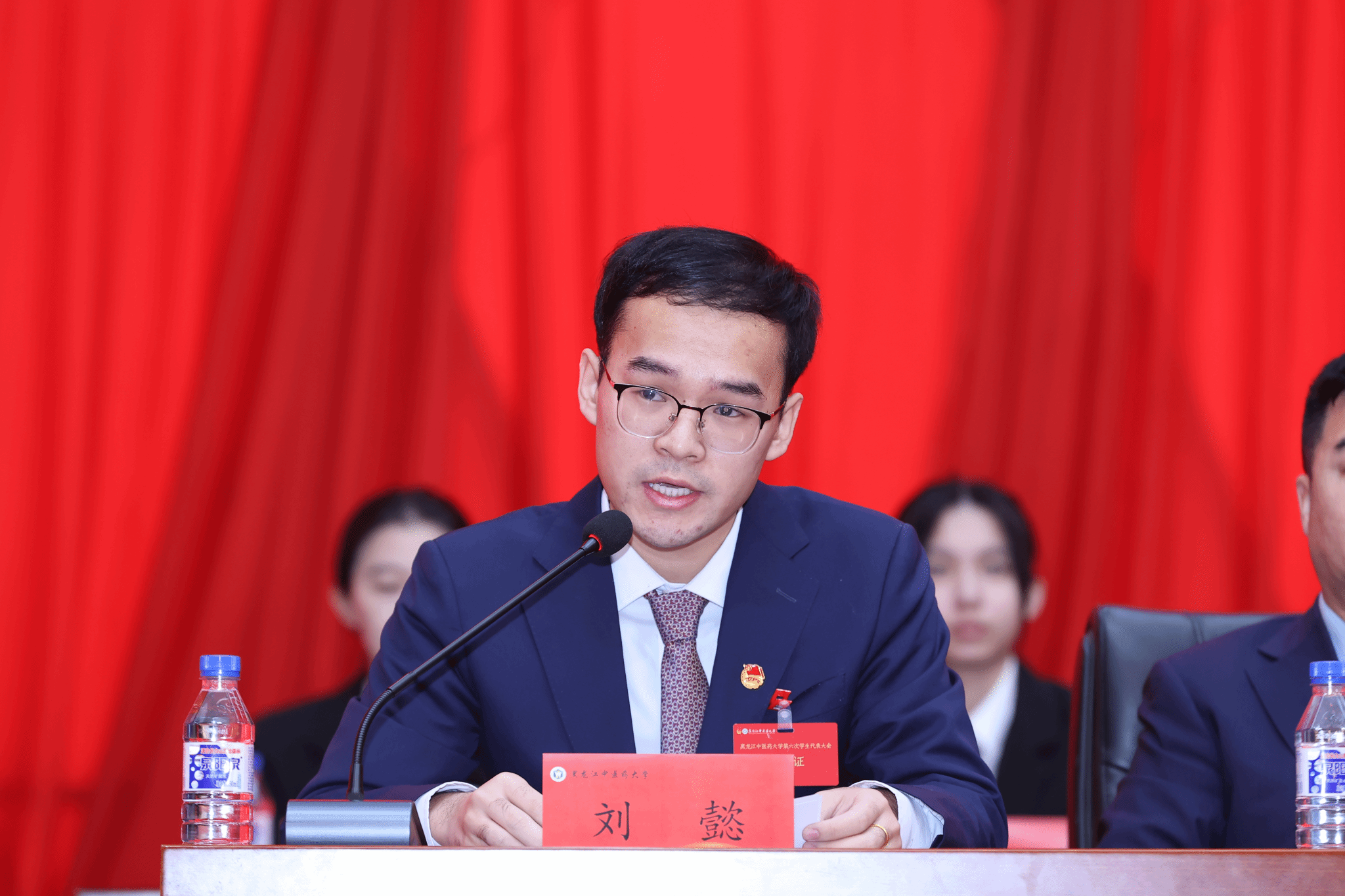 第五届学生委员会主席团成员郑子榕同学作题为《赓续初心使命,挺膺时代担当——以青春之力书写中国式现代化新篇章》的黑龙江中医药大学2024-2025年度学生委员会工作报告。