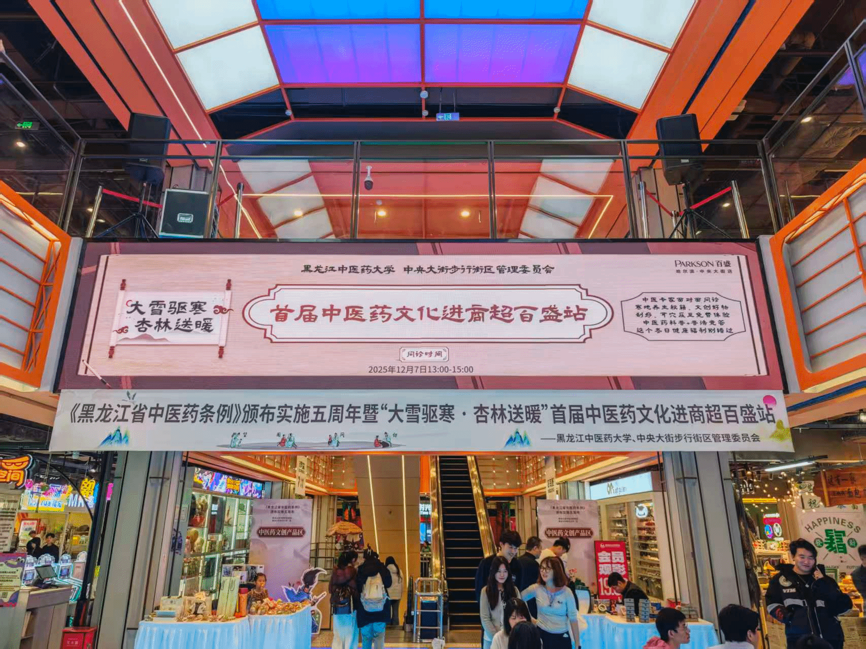 2025年是《黑龙江省中医药条例》颁布实施五周年,12月7日,在大雪节气当天,我校按照省中医药管理局相关工作安排,联合中央大街管委会在百盛购物中心(中央大街店)开展“大雪驱寒•杏林送暖”中医药文化活动。
