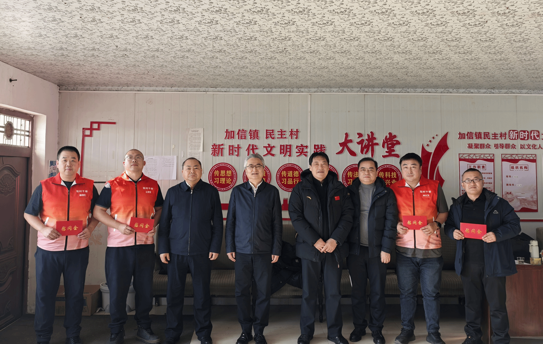 校领导向驻村工作队员发放慰问金