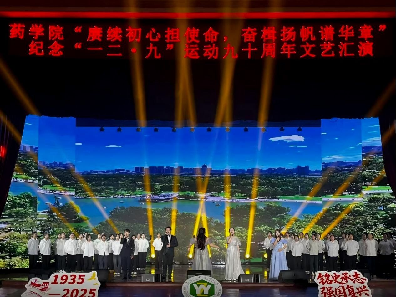 12月12日晚,药学院“赓续初心担使命,奋楫扬帆谱华章”纪念“一二·九”运动九十周年文艺汇演在主楼礼堂举行。校党委副书记、工会主席乔广霞,校党委常委、副校长吴修红,各相关职能部门负责人,各学院主管学生工作领导,药学院党政领导班子及药学院学生工作办公室全体人员出席活动。