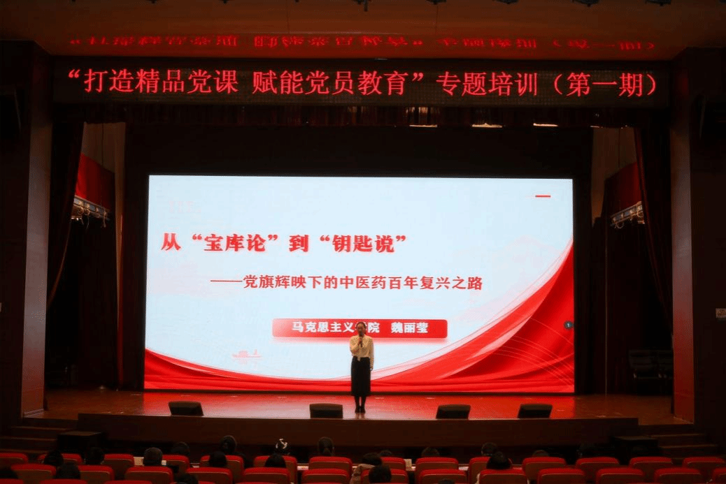 学校马克思主义学院教师第一党支部青年教师党员魏丽莹讲授微党课《从“宝库论”到“钥匙说”——党旗辉映下的中医药百年复兴之路》