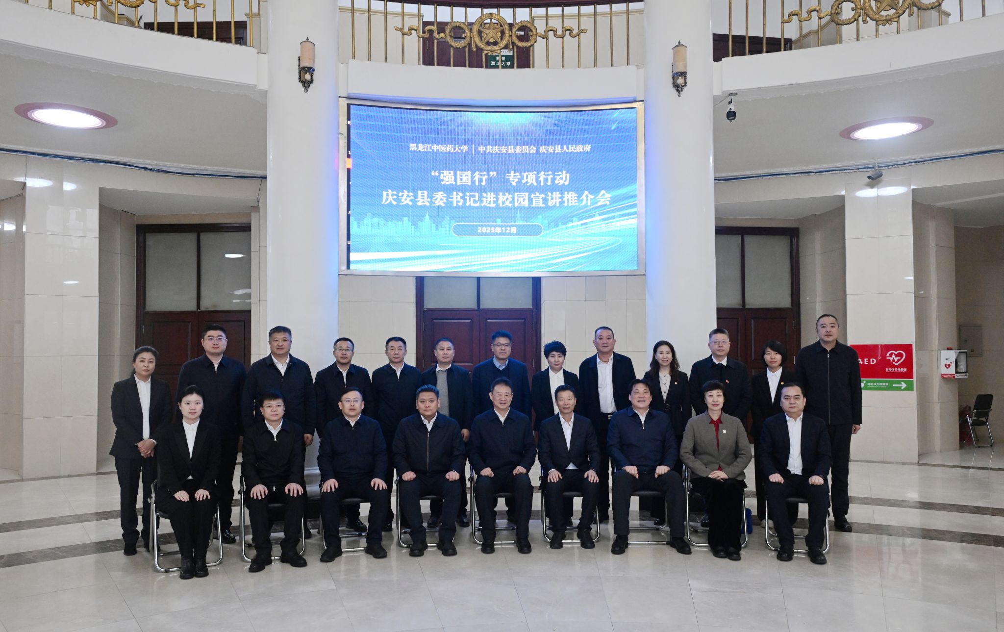 为进一步推动县校资源共享、优势互补,12月23日上午,庆安县委书记慕海军、庆安县委副书记、县长刘志宇一行来我校开展“双带头人”“强国行”专项行动暨县委书记进校园宣讲推介活动。学校党委书记赵炜明,校长、党委副书记郭宏伟,党委副书记尹占军,党委副书记、工会主席乔广霞,党委常委、副校长张洋出席活动,相关部门负责人及学生代表参加活动。