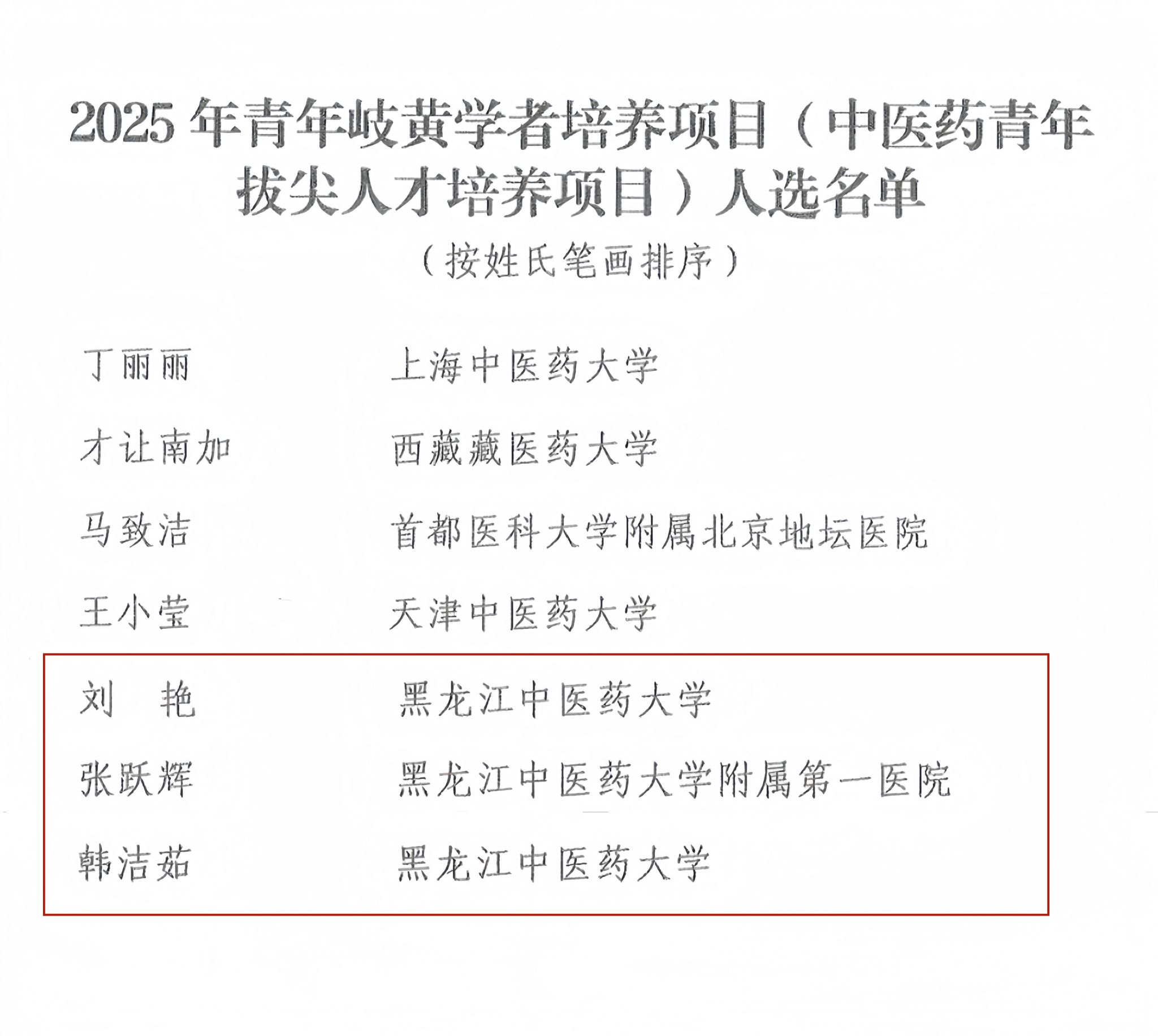近日,国家中医药管理局公布2025年青年岐黄学者培养项目(中医药青年拔尖人才培养项目)人选名单,我校刘艳、张跃辉、韩洁茹荣列其中。