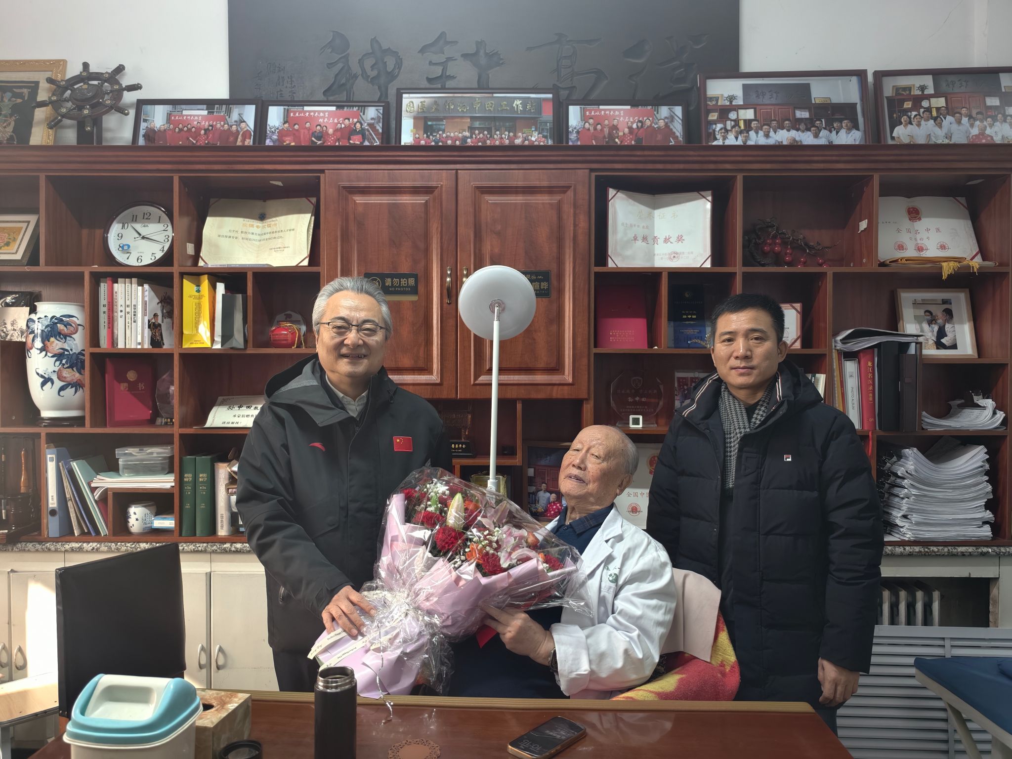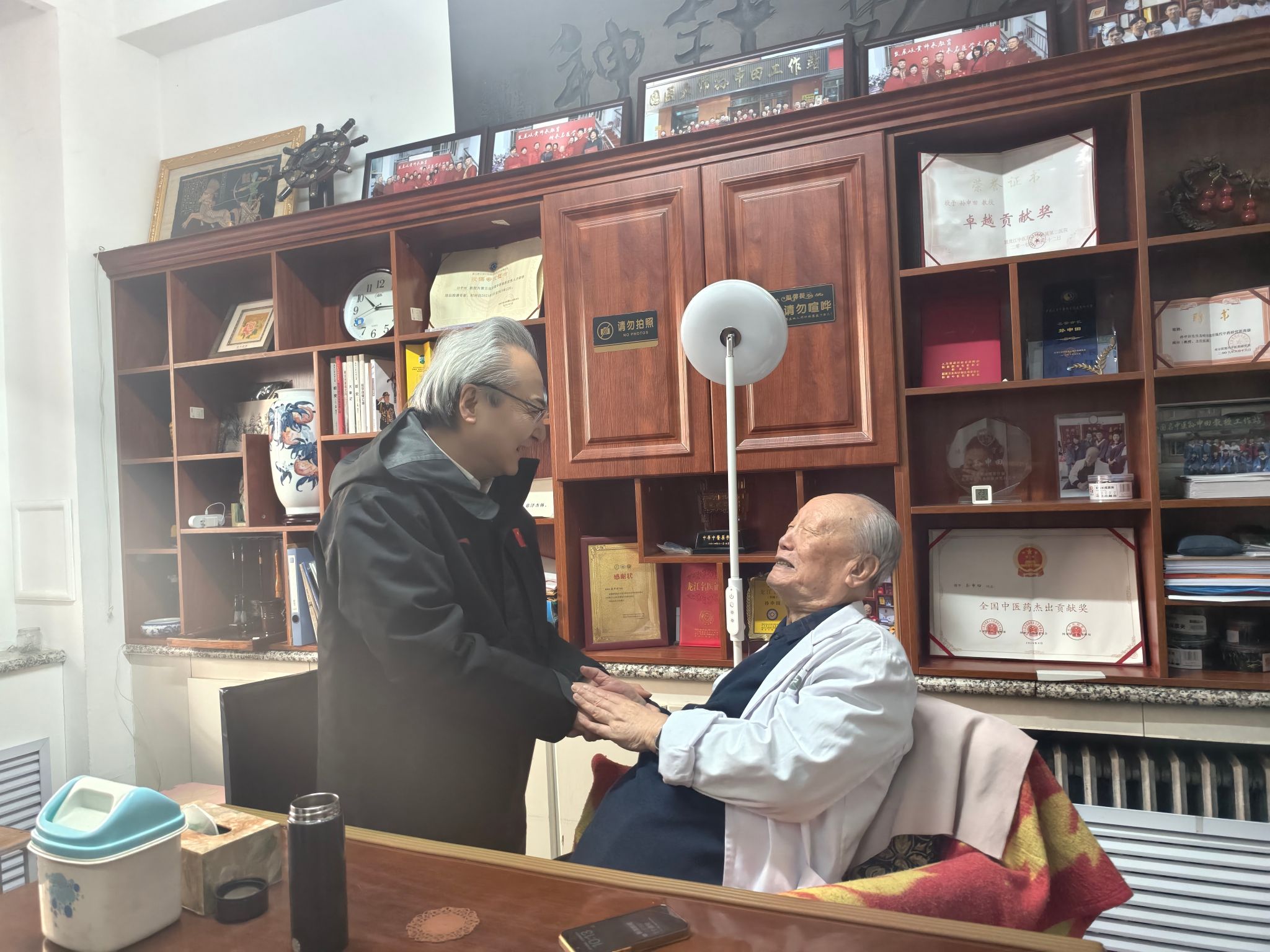 孙申田教授虽年届高龄,依旧精神矍铄、神采奕奕,日常仍坚持在工作室为患者诊疗,并悉心带教青年学子,毫无保留地将宝贵临床经验传授给后辈。他对学校的关心慰问表示衷心感谢,并表示将继续坚守岗位、服务人民,为中医药薪火相传、守正创新贡献力量,同时向全体同仁送上新春祝福。