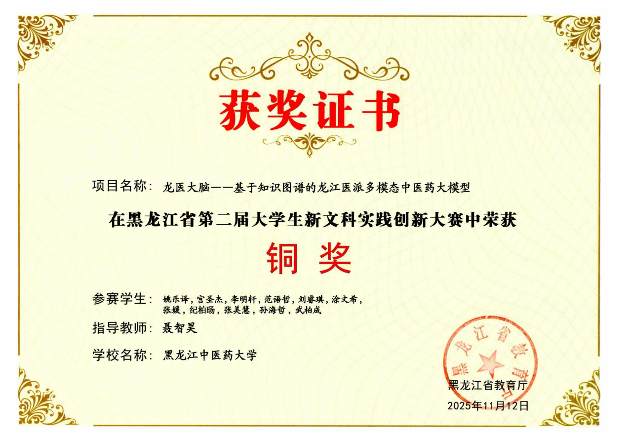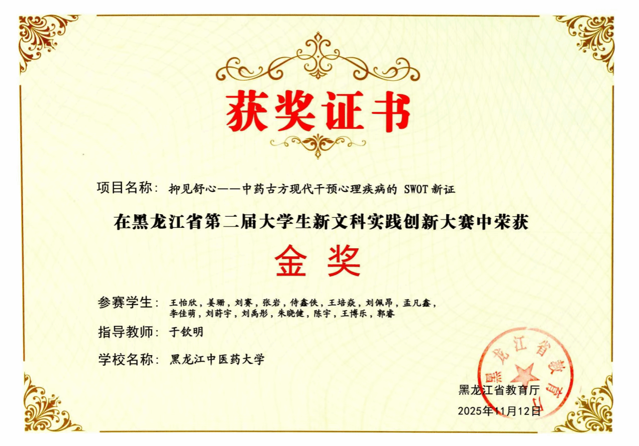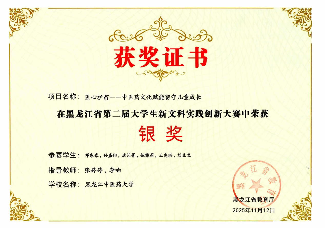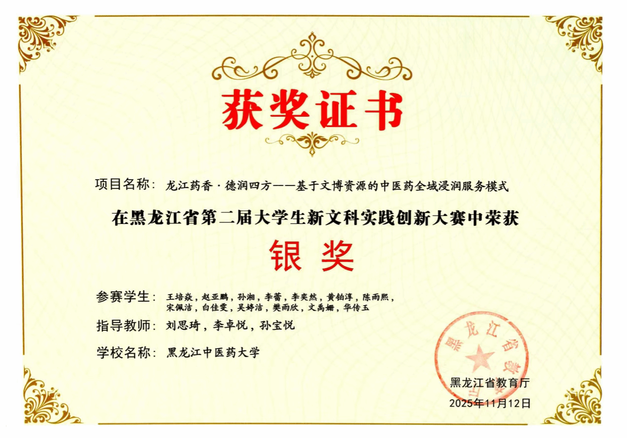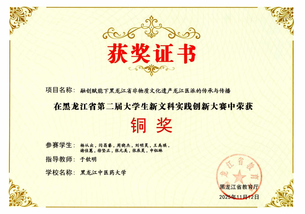 由黑龙江省教育厅主办、哈尔滨师范大学承办的黑龙江省第二届大学生新文科实践创新大赛于2025年10月12日落幕,我校选派的5个项目负责人和团队成员参加省决赛,最终荣获省级奖项7项,其中金奖1项、银奖4项、铜奖2项。