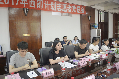 6月27日下午,我校2017年西部计划志愿者欢送会在主楼二楼会议室举行,校党委副书记姚凤祯出席活动并讲话,代表学校表达对志愿者同学们的亲切问候和美好祝愿。