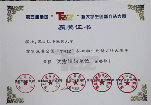 其中,由孙远征、孙树文老师指导的2012级针推本硕专业姚嘉等同学的作品《定时自动排气防脱落火罐》,由张荣兴、冷德生老师指导的2015级中药药剂学研究生李陈雪等同学的作品《基于TRIZ理论的适用于大鼠的离体心脏灌流装置》,由聂智昊、唐仁康老师指导的2013级中西医临床专业曹鹏等同学的作品《基于TRIZ理论的护理简便移动器》等三个项目获得发明制作类三等奖。由高杨、邢野老师指导的2016级中医学专业吴上斌等同学的作品《基于TRIZ理论的可自动选择与称量的智能中药柜》项目获得工艺改进类三等奖。由张婷婷、栾天庆老师指导的2014级中西医临床专业袁淑影等同学的作品《基于TRIZ理论的抗足廯养生草鞋》,由郭菲菲、殷越老师指导的2014级针推本硕专业丛婧等同学的作品《草本舍》,由王贺、刘译阳老师指导的2014级市场营销专业刘永泽等同学的作品《基于TRIZ原理的传统中医药消银脐贴创新设计》,由于钦明、梁宇老师指导的2014级市场营销专业董影等同学的作品《500卡健康餐项目》四个项目获得创业类三等奖。