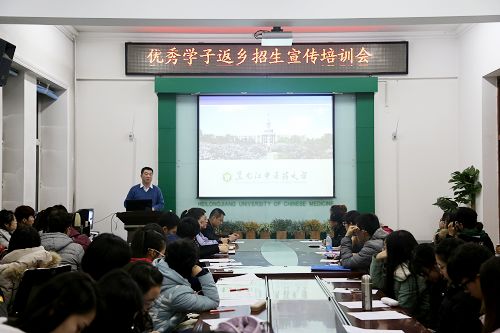 12月19日下午,我校在主楼106就业洽谈室召开“回访高中母校•相约龙江中医”暨优秀学子赴高中母校进行招生宣传学生培训会。