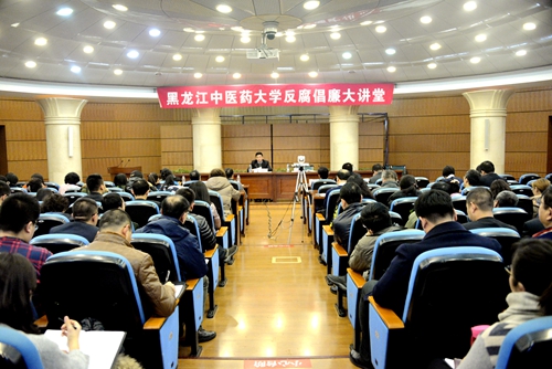 11月14日下午,我校在主楼求真讲堂举办“反腐倡廉大讲堂”,校党委副书记、校长孙忠人为学校党员干部讲廉政党课。校党委常委、纪委书记尹占军主持“反腐倡廉大讲堂”。校领导袁纲、陈亚平、王喜军、刘雪松、张晓峰、乔广霞,以及学校副处级以上干部,学生辅导员、部分教师和学生党员代表“听课”。佳木斯学院党员干部和学生辅导员同步收看廉政党课视频。