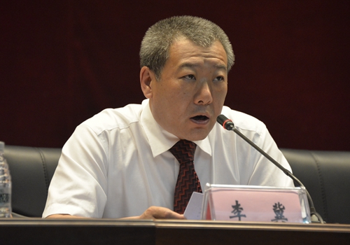 | 副校长李冀宣读《关于校长工作报告的决议》和《关于工会工作报告的决议》 |