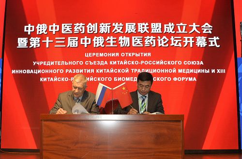 中俄中医药创新发展联盟成立大会暨第十三届中俄生物医药论坛开幕式6月16日上午在黑龙江中医药大学综合楼会议中心举行。由黑龙江中医药大学和俄罗斯阿穆尔国立医学院倡导发起的中俄中医药创新发展联盟正式宣告成立,来自中俄两国的高校、科研院所、医疗机构、医药企业等共70家单位,作为该联盟首批成员联合发表了《共同宣言》,表示要“共同促进中医药在俄罗斯乃至世界范围内健康、有序、成熟地传播和发展。”