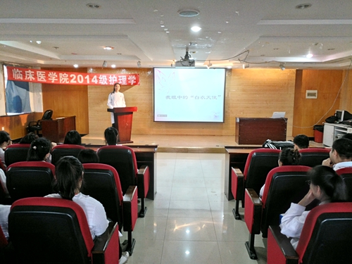 5月11日下午,2014级护理学专业的学生在大学生活动中心第二活动室举办演讲会。同学们以“我眼中的白衣天使”为主题,分享自己对护理专业的理解和认识。