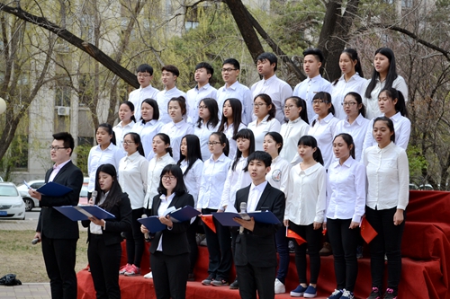 4月27日,人文与管理学院组织2014级和2015级的学生,在学校“大医之路”文化园举办第二届“以史铭志以诗笃行”主题诗会,带领同学们以诗歌朗诵的方式纪念五四运动97周年。