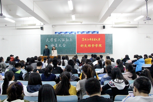 3月31日晚,学院在教学楼202教室召开了大学生入伍征兵动员大会,学生工作辅导员老师向同学们详细介绍了大学生应征入伍的具体要求、网上报名方法、体检送审流程以及退役后享有的优惠政策、经济补助等方面内容。随后,2015年服役期满返校的2010级针灸推拿学陈光瑞以及2012级康复治疗学田宇诗与现场同学们分享自己的军旅生活经历,鼓励大家抓住这个建设祖国和锻炼自我的双重机遇,积极参军,投身国防建设。